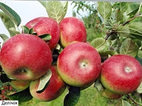 Осінній сорт. Плоди більші за середні (150—190 г), середньої одномірності, зеленувато-жовті з темно-червоним розмито-смугастим рум'янком на більшій частині поверхні, де небагато дрібних, ледь помітних підшкірних пяточок. Шкірочка тонка, середньої міцності, гладенька, блискуча. М'якуш білий, окремими роками рожевуввто-білий дрібнозернистий, середньої щільності, соковитий, відмінного кисло-солодкого смаку. Знімна й споживча стиглість настає в першій декаді вересня. В холодильнику плоди зберігаються 1,5—2,5 місяця